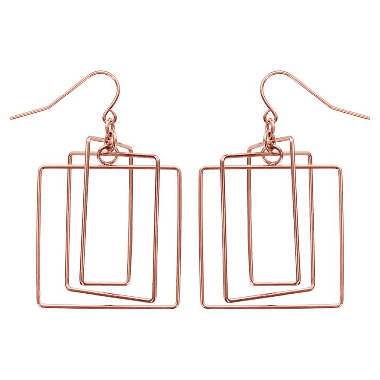 BOUCLES D'OREILLES TIGE ACIER ET PVD ROSE MULTI CARRÉ LONGUEUR 4.3 CM