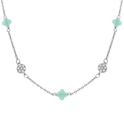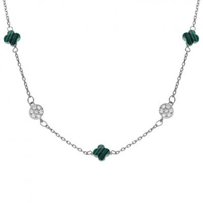 COLLIER ARGENT RHODIE PENDENTIF CABOCHON JADE VERTE VERITABLE ET OXYDES BLANCS SERTIS 37,5+4CM Poids...65,00€ TTC