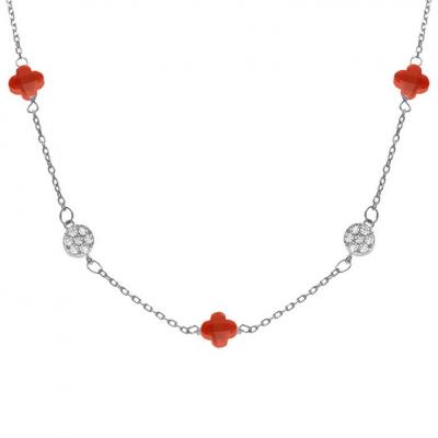 COLLIER ARGENT RHODIÉ CHAPELÉ AVEC BOULES DE RÉSINE ROUGE - LONGUEUR 45 CM - POIDS 2.90 GR55,00€ TTC