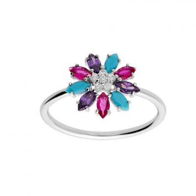 BAGUE ARGENT RHODIÉ ARBRE DE VIE OXYDES T56