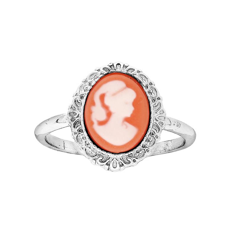 BAGUE ARGENT RHODIE CAMÉE ROSE, TAILLE 58