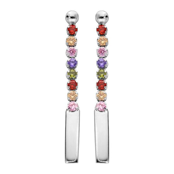 BOUCLES D'OREILLES EN ARGENT RHODIÉ PENDANTES AVEC OXYDES DE ZIRCONIUM MULTI COLORES - POIDS 1.80 GR