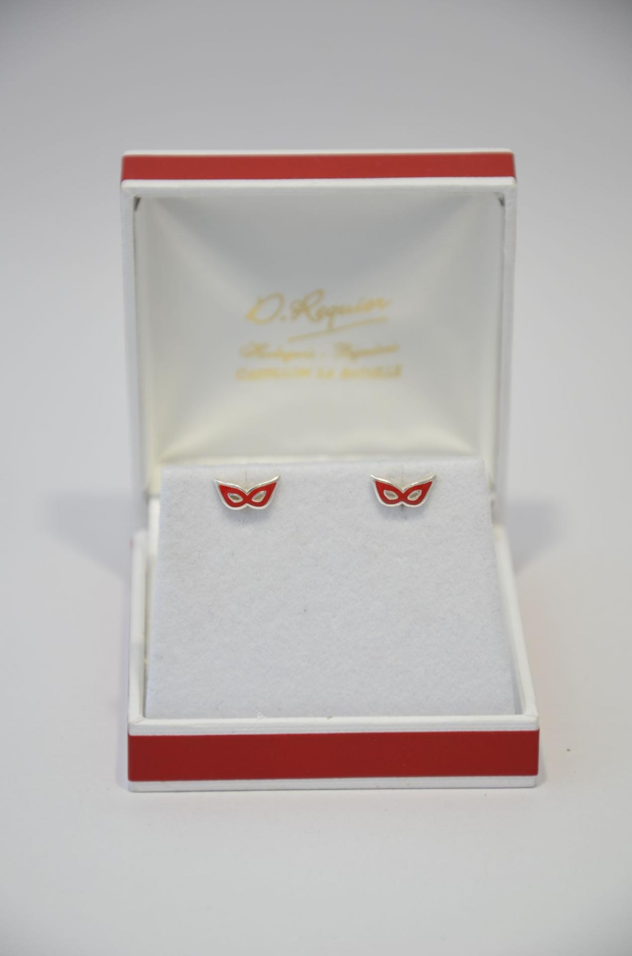 BOUCLES D'OREILLES TIGE ARGENT MASQUE ROUGE 2 G