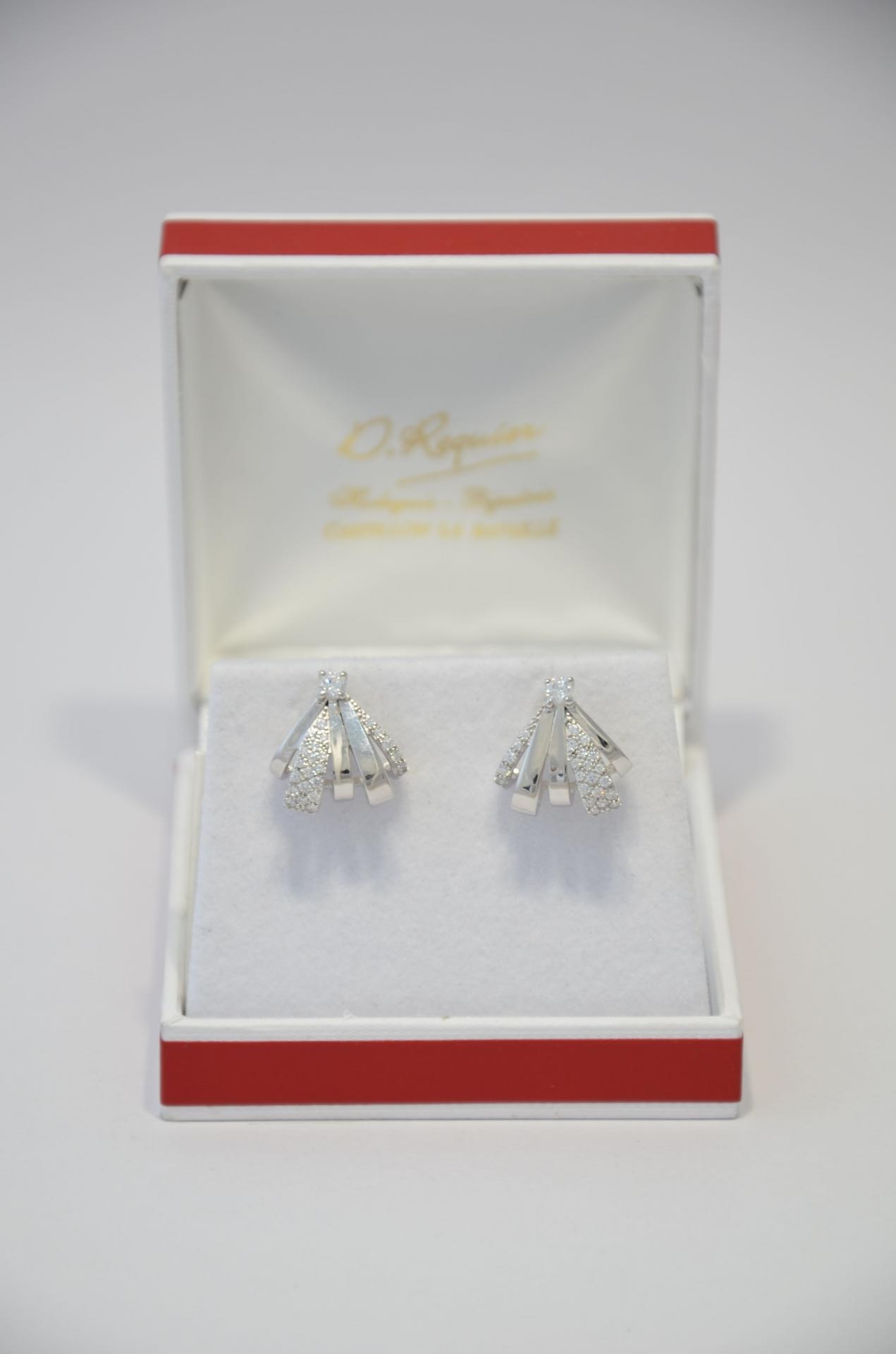 BOUCLES D'OREILLES ARGENT RHODIÉ MOTIF MODERNE ALTERNÉ PAVAGE OXYDES HAUT.15 MM 4.02 G