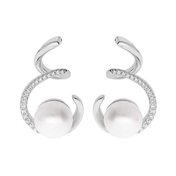 BO TIGE ARGENT RHODIE PERLE DE CULTURE D'EAU DOUCE BLANCHE 8MM ET OXYDES BLANCS SERTIS