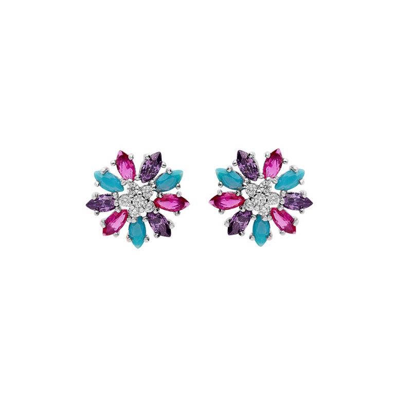 Boucles d'oreilles argent rhodié fleur oxydes multicolores