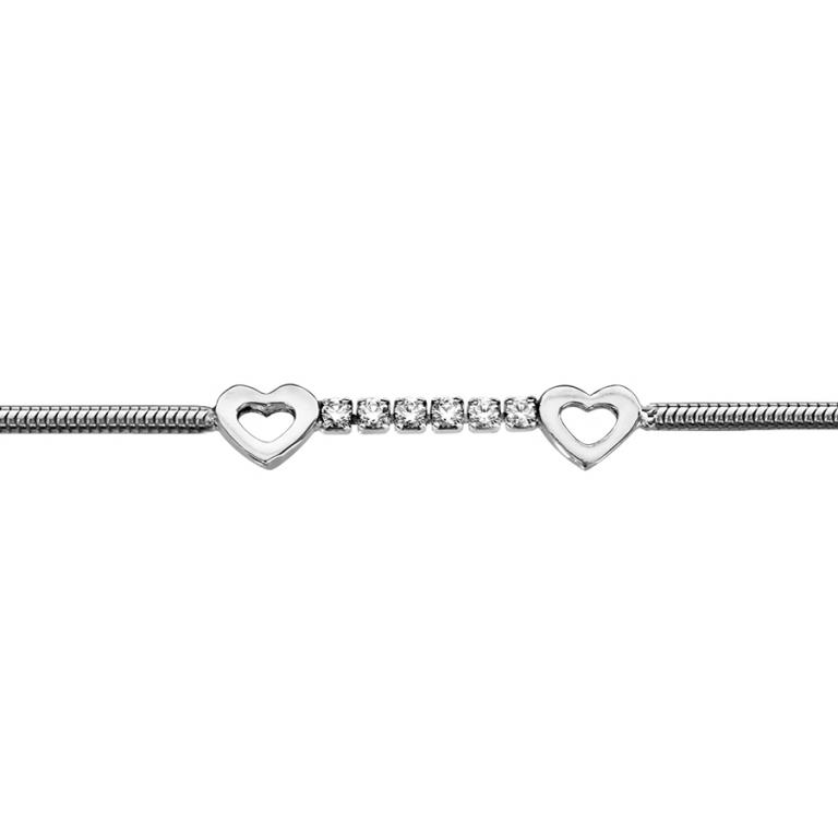 BRACELET ARGENT RHODIE OXYDES BLANCS SERTIS MOTIF COEUR