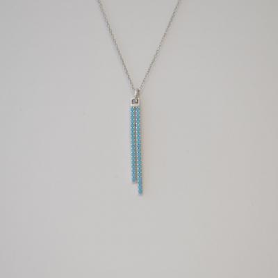 COLLIER EN ARGENT PENDENTIF DOUBLE BARRETTE SERTIE DE TURQUOISES SYNTH 3.30 G ,40 + 3 CM70,00€ TTC Indisponible