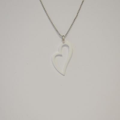 COLLIER ARGENT RHODIÉ CHAINETTE BOULES CŒUR RÉSINE BLANCHE 3 CM EN BIAIS ÉVIDÉ 42+3CM51,00€ TTC
