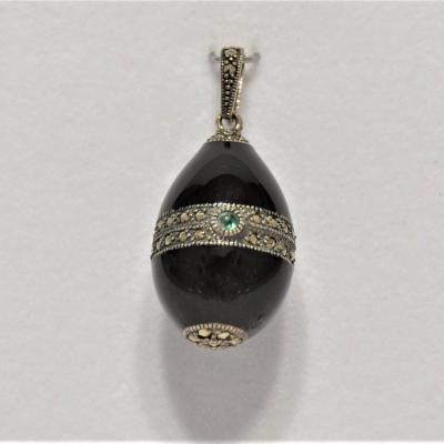 PENDENTIF ARGENT ŒUF ÉMAIL NOIR MARCASSITE 3 CM 5.00 G179,00€ TTC