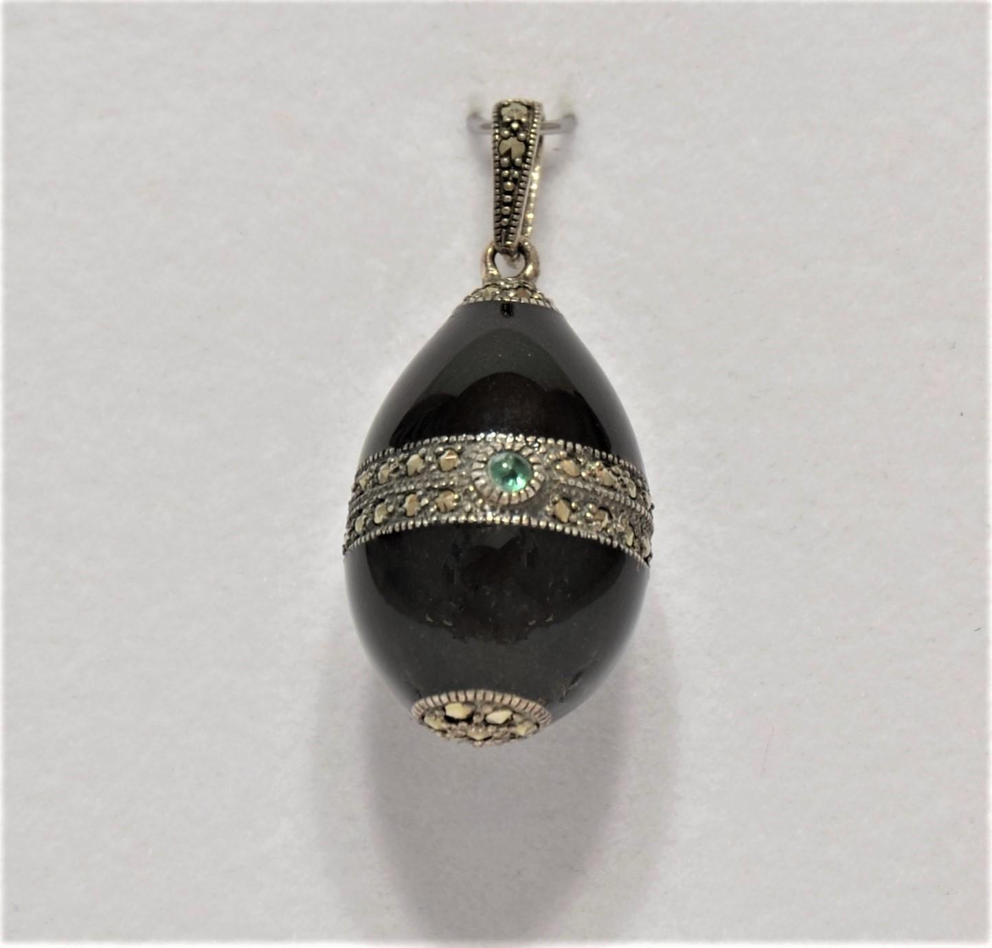 PENDENTIF ARGENT ŒUF ÉMAIL NOIR MARCASSITE 3 CM 5.00 G