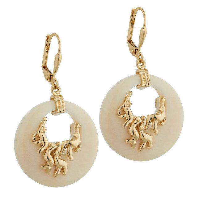 BOUCLES D'OREILLES JOURDAN DORMEUSES EN PLAQUÉ OR ET RÉSINE MOTIF PERSONNAGES