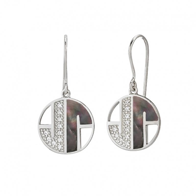BOUCLES D'OREILLES DORMEUSES JOURDAN EN ARGENT 925 MOTIF CERCLE SERTI D'OXYDES DE ZIRCONIUM ET NACRE POIDS 3.74 GR