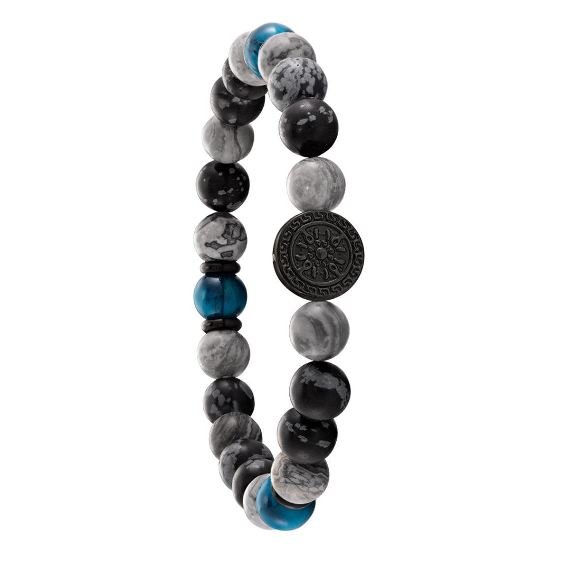 BRACELET YASUR ACIER PIERRE FLOCON DE NEIGE ET OEIL DE TIGRE BLEU