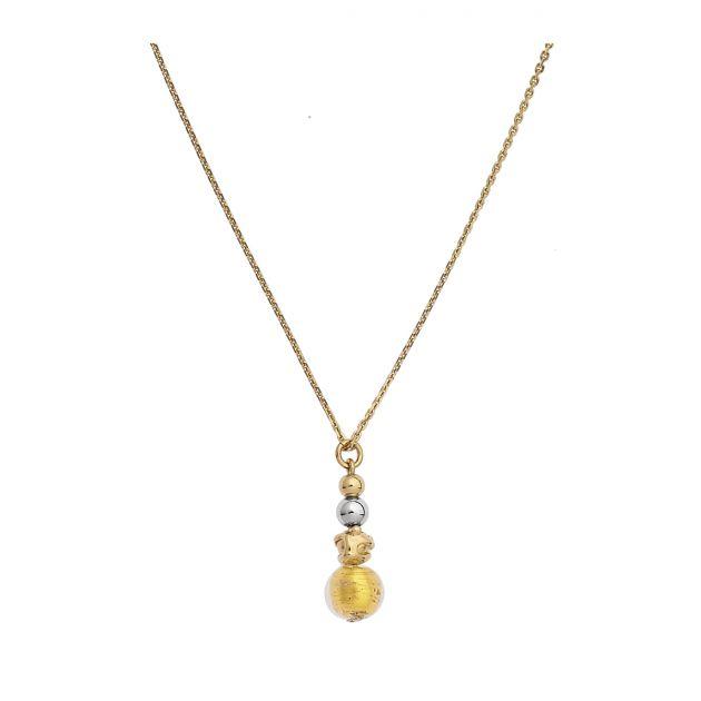 COLLIER JOURDAN EN PLAQUÉ OR CHAÎNE MAILLE FORÇAT LONGUEUR 42 CM ET PENDENTIF 1 OERLE EN VERRE ET 3 PERLES PLAQUÉ OR