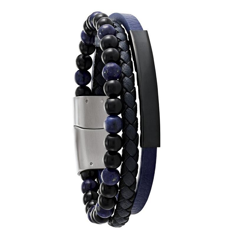 BRACELET HERCULE ACIER CUIR NOIR ET ONYX