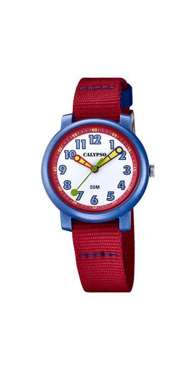 MONTRE CALYPSO ENFANT ROUGE ET BLEU - CADRAN ÉDUCATIF IDÉAL POUR APPRENDRE A LIRE L' HEURE - BOITIER EN RÉSINE DIAM. 32 MM - BRACELET EN NYLON - ÉTANCHE 5 ATM - GARANTIE 2 ANS