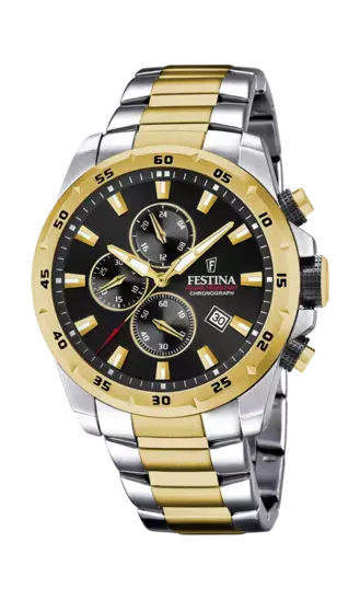 MONTRE FESTINA CHRONO ACIER BICOLORE FOND NOIR