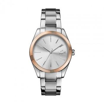MONTRE LACOSTE FEMME, Étanchéité : 3 ATM / 30 mètres, Mouvement : 3 aiguilles, Diamètre du boîtier : 36 mm, Matière : Mate argenté / brillant argenté /Tour de cadran rosé - GARANTIE 2 ANS