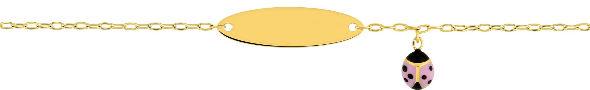 IDENTITÉ BÉBÉ OR 750/000 AVEC COCCINELLE ROSE, 14 CM, POIDS 1.25 G
