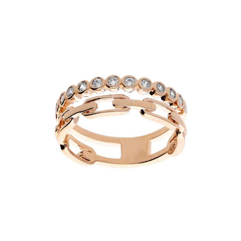 BAGUE PLAQUÉ OR 2 RANGS OXYDES BLANCS SERTIS ET MAILLE RECTANGULAIRE
