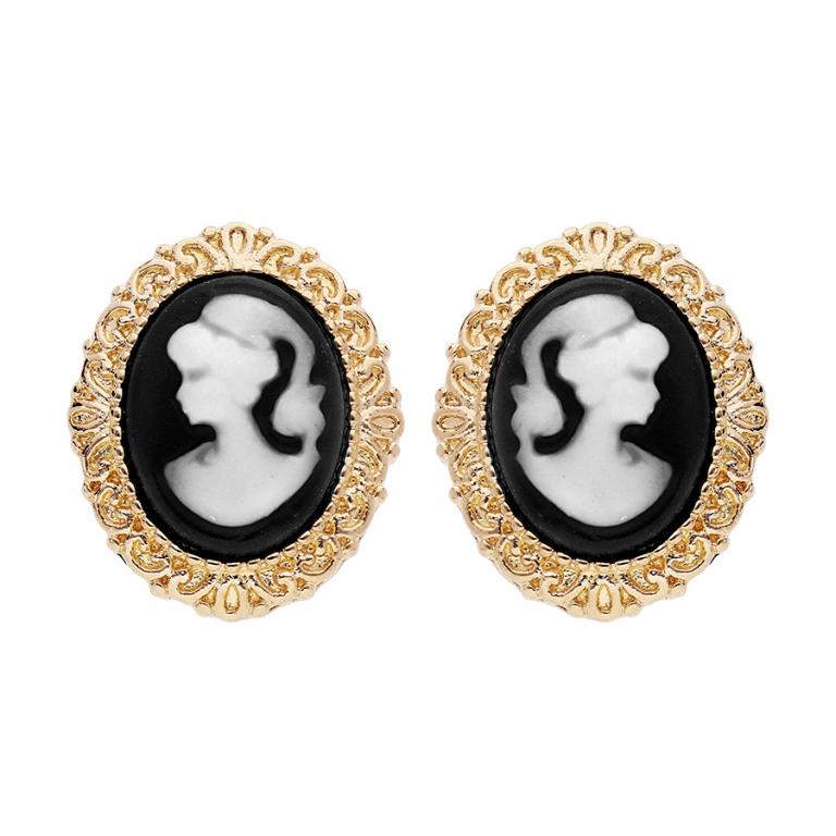 BOUCLES D'OREILLES CAMÉE NOIR PLAQUÉ OR