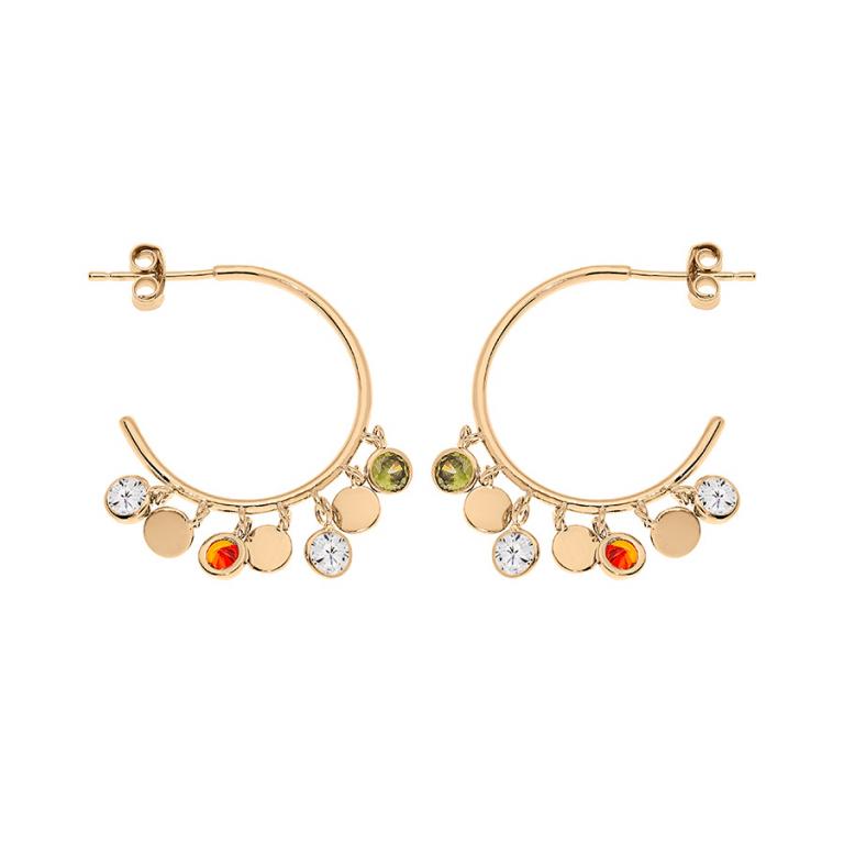 BOUCLES D'OREILLES TIGE PLAQUÉ OR CREOLES PAMILLES EMPIERREES MULTICOULEURS