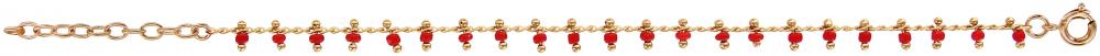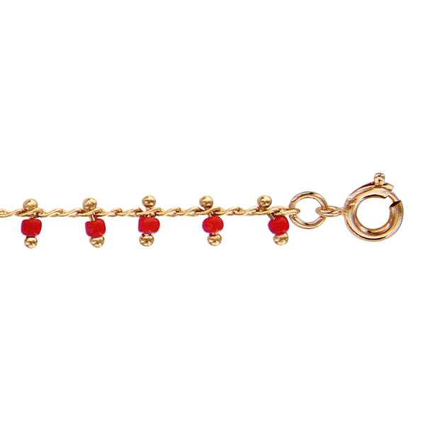 BRACELET PLAQUÉ OR PAMPILLES BOULES CORAIL ROUGE SYNTHÉTIQUE 16+2 CM
