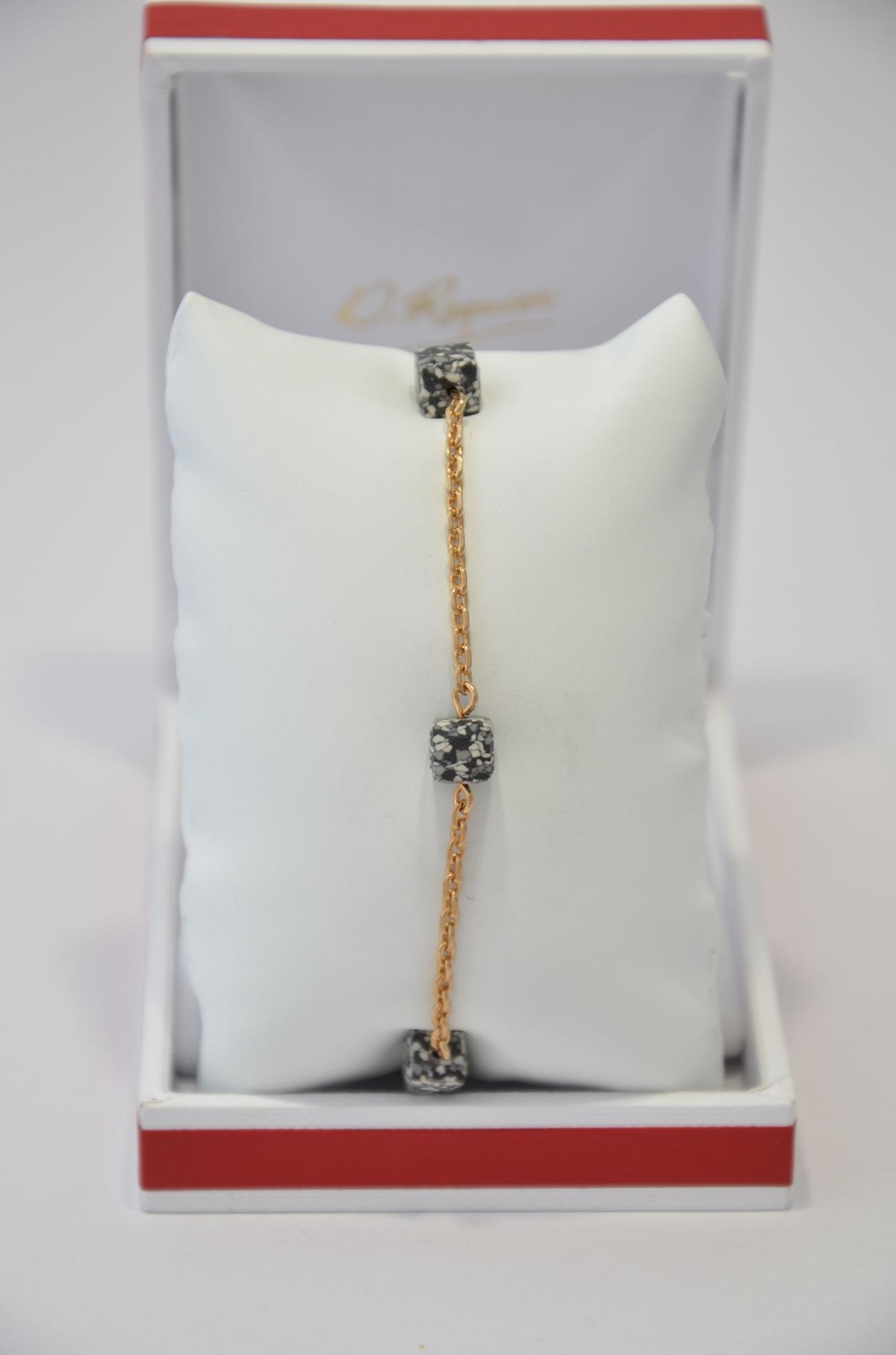 BRACELET PL OR FORÇAT 3 CUBES MARBRÉS RÉGLABLE 16+3 CM