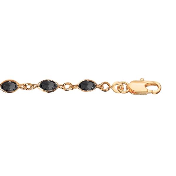 BRACELET PLAQUÉ OR PIERRES NAVETTES NOIRES 16+3 CM
