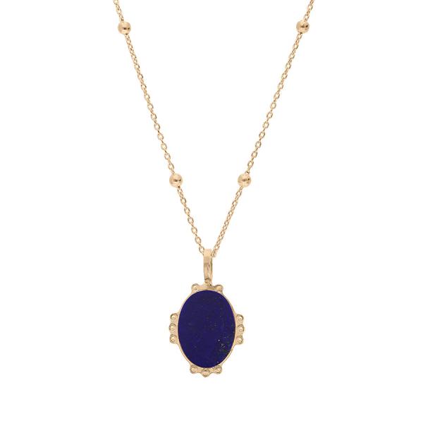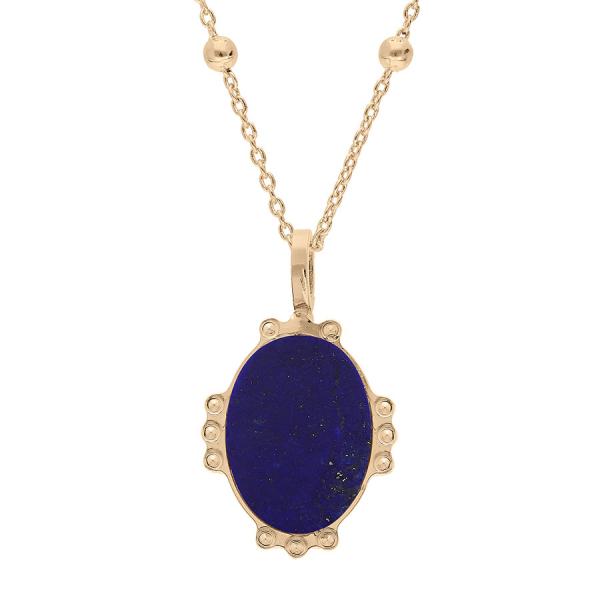 COLLIER PLAQUÉ OR MEDAILLE OVALE 14MM PERLÉE PIERRE NATURELLE LAPIS LAZULLI 38+5CM