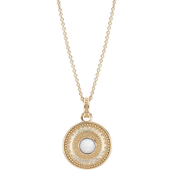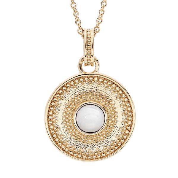 COLLIER PLAQUÉ OR PENDENTIF ROND PIERRE NACRE VÉRITABLE 40+4CM Longueur 44,00cm Matière PLAQUÉ OR