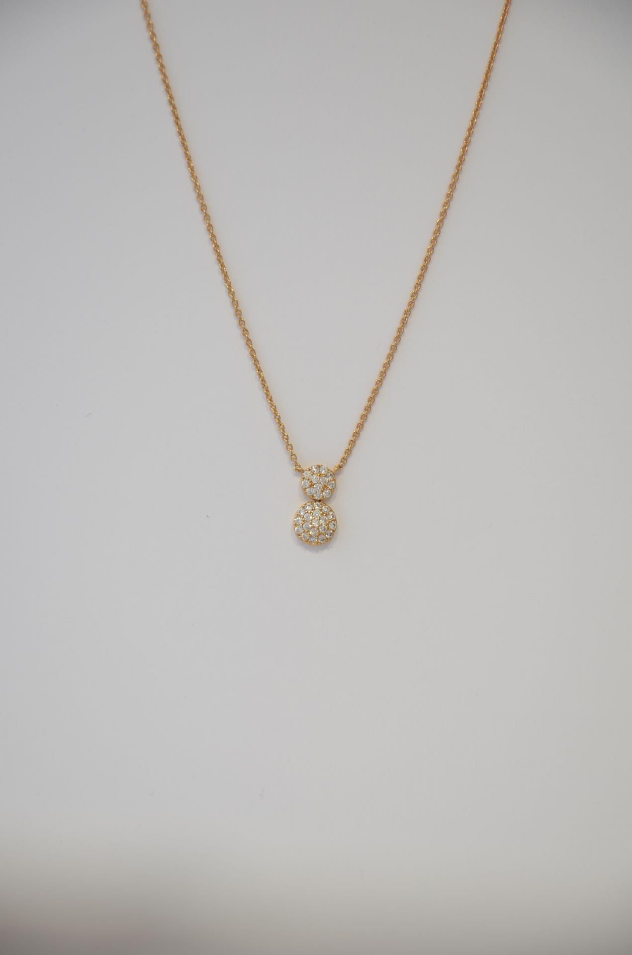 COLLIER EN PLAQUÉ OR PENDENTIF 1.5 CM, 2 RONDS SERTIS D'OXYDES CHAINE 38 + 4 CM