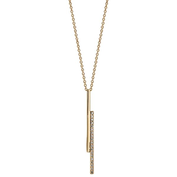COLLIER PLAQUÉ OR PENDENTIF BÂTON 4 CM OXYDES BLANCS SERTIS 40+4 CM