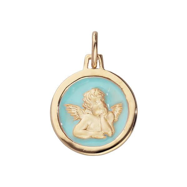 PENDENTIF EN PLAQUÉ OR ANGE SUR RÉSINE BLEU PÂLE